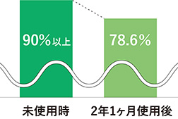 2年経過後も除去率は約8割と高い除去率をキープしており、安心して長くお使いいただけます。