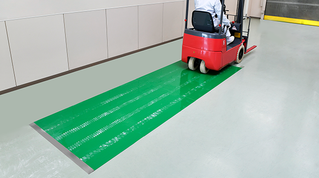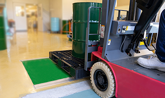 フォークリフトで荷物を搬入する際、土台となるパレット裏の汚れが工場内へ持ち込まれることに困っていましたが、マットにパレットを置くことで汚れが見事にリフトマットに転写し、監査でも高い評価を得ることができました。
