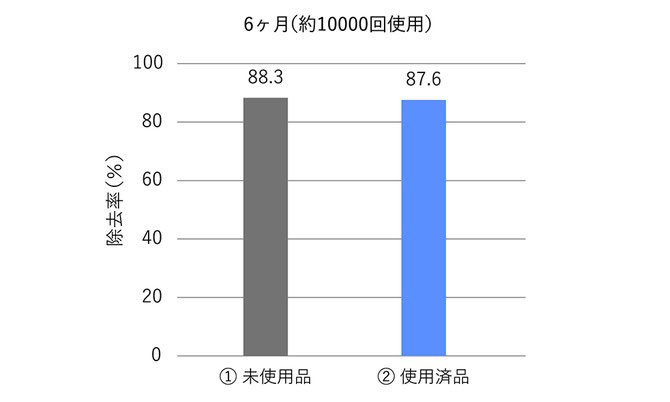 ①未使用品 ②使用済品(約10000回使用。水洗いで約430回洗浄した後)