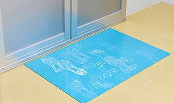 ステップマット®は、靴底に付着した毛髪やほこりを90%以上除去する粘着マット。