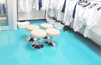 更衣室の出入り口と作業エリアの出口にステップマットを設置。