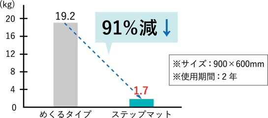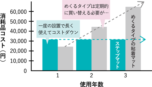 ■ ステップマットは2年間繰り返し使用、めくるタイプは使い終え同製品を購入して2年間使用する。