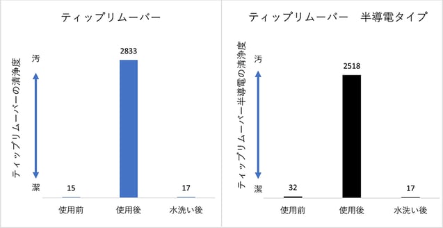 使用前と使用後に水洗い・乾燥させたものの清浄度を比較すると、ほぼ同じ清浄度になった。