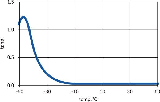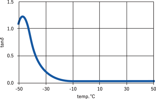 tanδ0.1以下ではバネ構造に近い性質をもち、-25℃以上の帯域では高反発性を維持します。